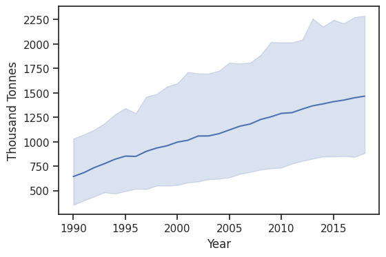 - Measure – The measure used to show the value (KG per capita or Thousands of Tonnes)