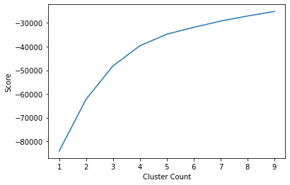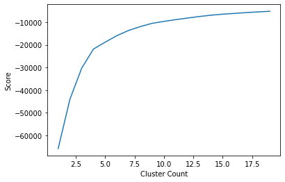 As you can see, around 4 or 5 clusters, the increase in score is negligible. We can now go ahead and visualize the clusters.